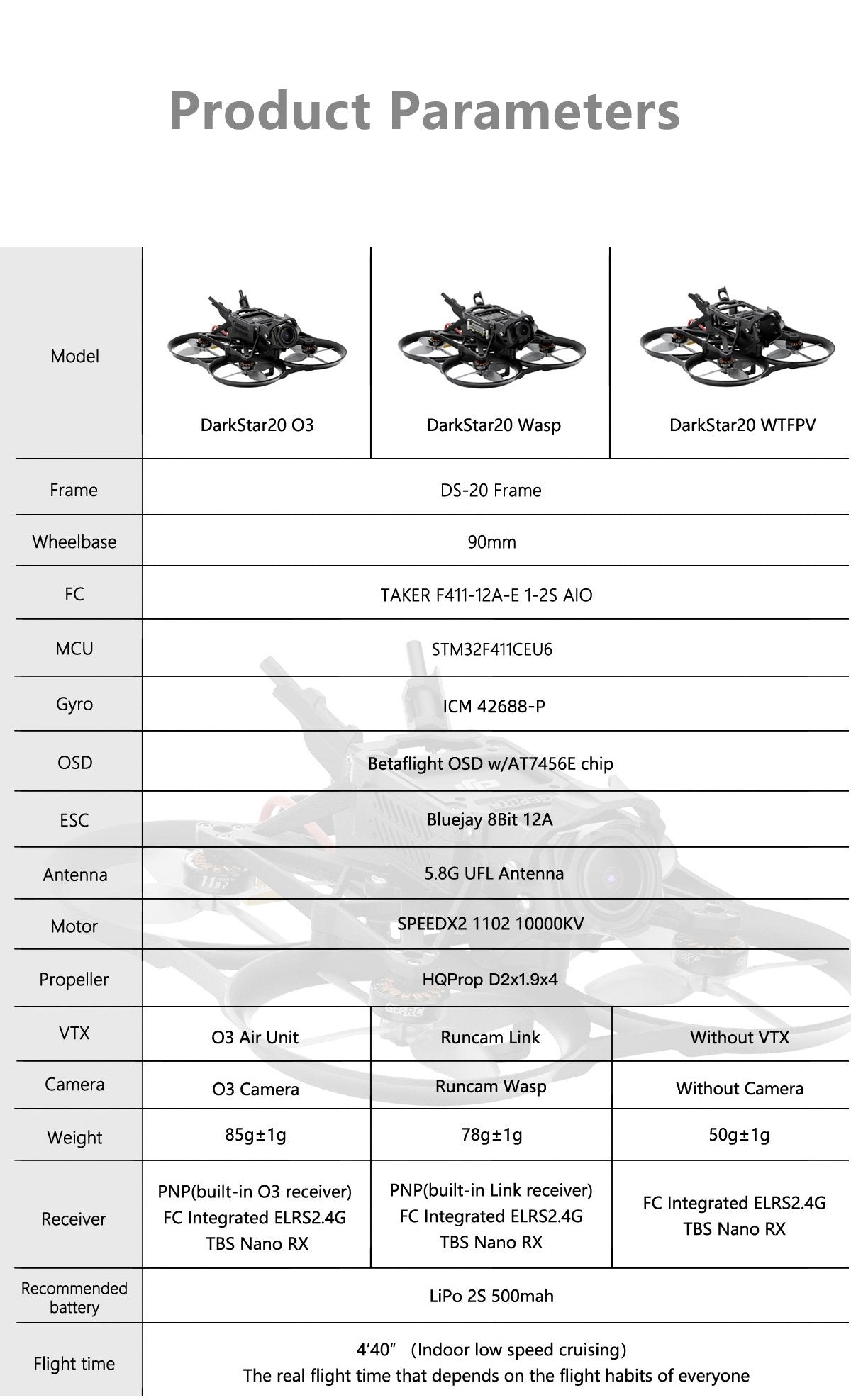 - Intensive Zusammenarbeit mit HQProp, um die dynamische Balance von DT51mm x4 Pros vollständig zu optimieren und so die Bildung von Gelee zu reduzieren.