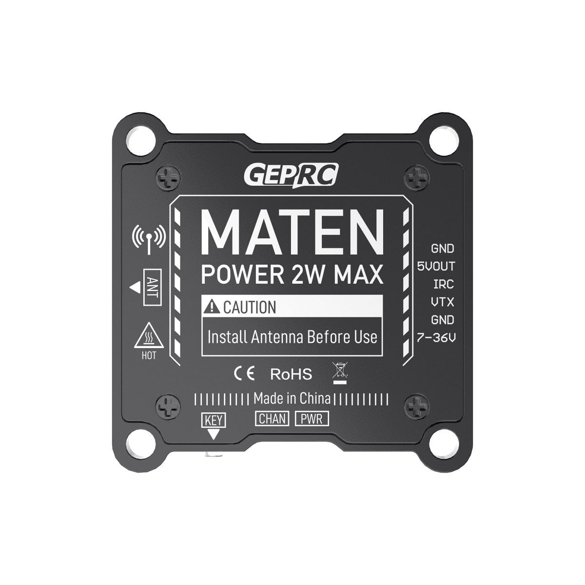 Die vom GEPRC-Team neu entwickelte Hochleistungs-Bildübertragung MATEN 1.2G 2W VTX ist nun offiziell erhältlich. Sie bietet eine sehr hohe Leistung mit vier einstellbaren Leistungsstufen und einer maximalen Leistung von bis zu 2000 mW. Das Übertragungssignal ist sehr stabil und die Durchdringungsfähigkeit hervorragend.
