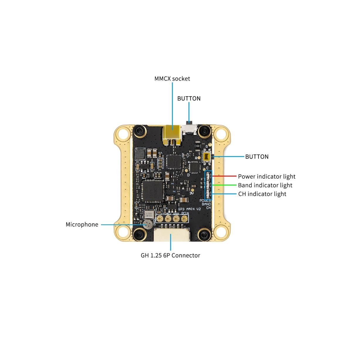 - Integriertes VTX-Mikrofon, Echtzeitübertragung der Drohnengeräusche.