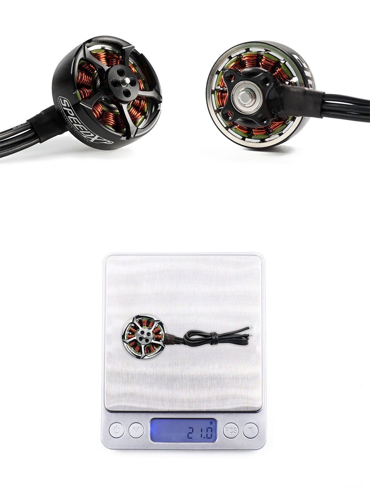 Durch die Verwendung maßgeschneiderter, hochwertiger Materialien und eines professionellen Magnetkreisdesigns bietet der SPEEDX2 2105.5-Motor gutes Handling und stabil aggressive Leistung. Für ein super ruhiges Flugerlebnis.