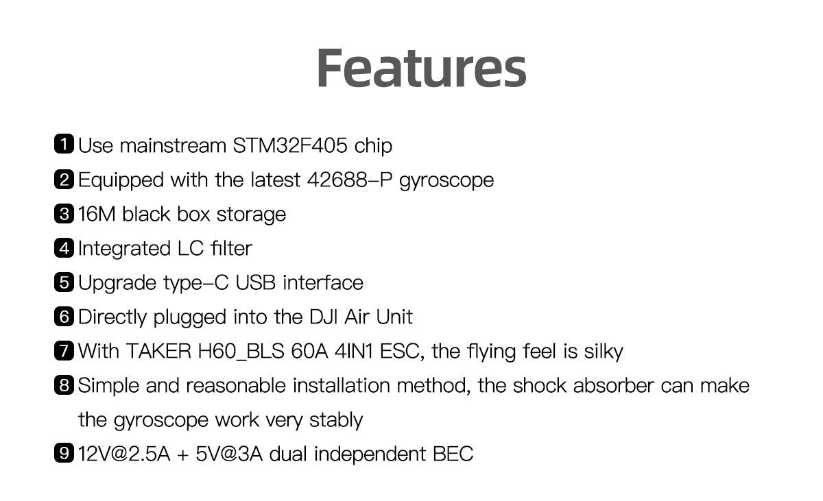 - Mit TAKER H60_BLS 60A 4IN1 ESC ist das Fluggefühl seidig
