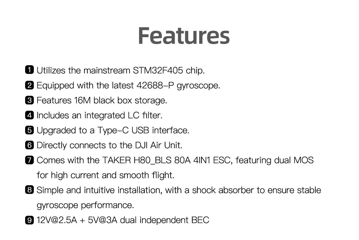 - Mit TAKER H80_BLS 80A 4IN1 ESC, Dual MOS, hoher Strom, seidiger Flug