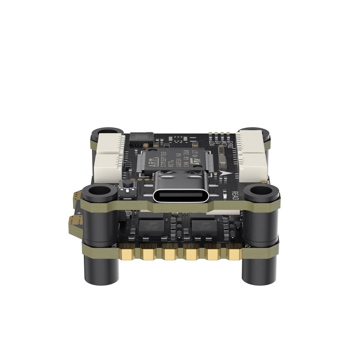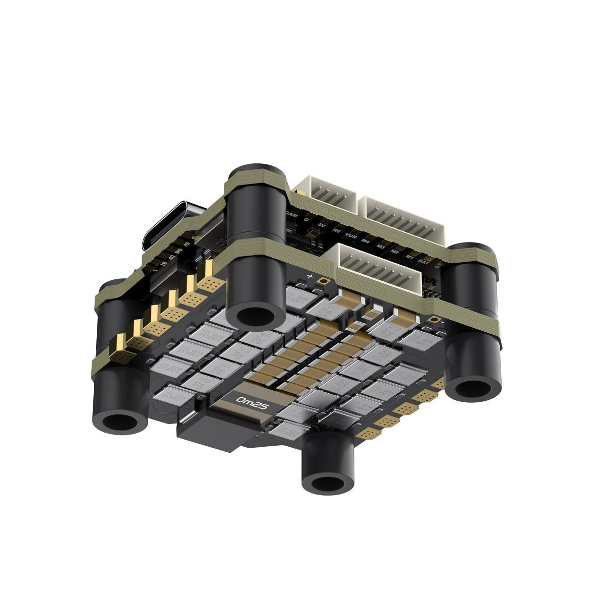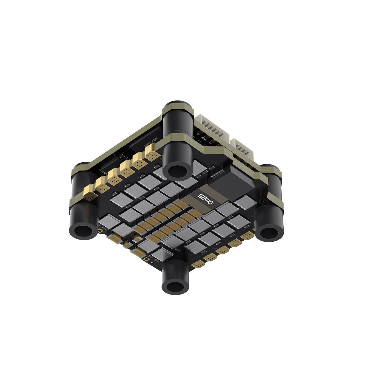 Die Montagelöcher aller Stapel haben eine Größe von 25,5 x 25,5 mm und sind damit mit den meisten marktüblichen Rahmen für die Installation von AIO-Flugreglern kompatibel. Die Stapelkombination trägt zur Wärmeableitung vom Hauptregler und den MOS-Röhren bei.