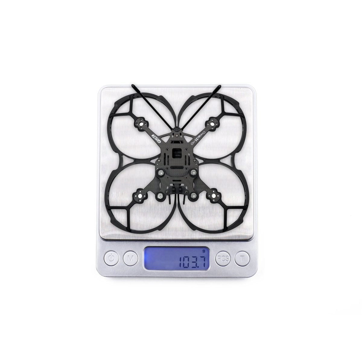 - Waga: 130,7 g (w tym osłona śmigła, mocowanie kamery GP, wydruki 3D)