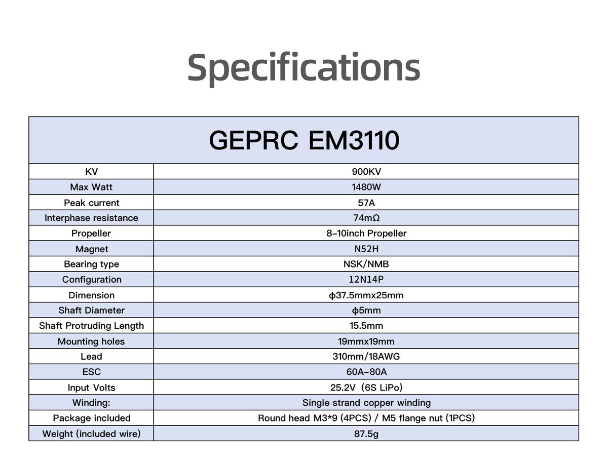 - Model: EM3110 900KV Motor
