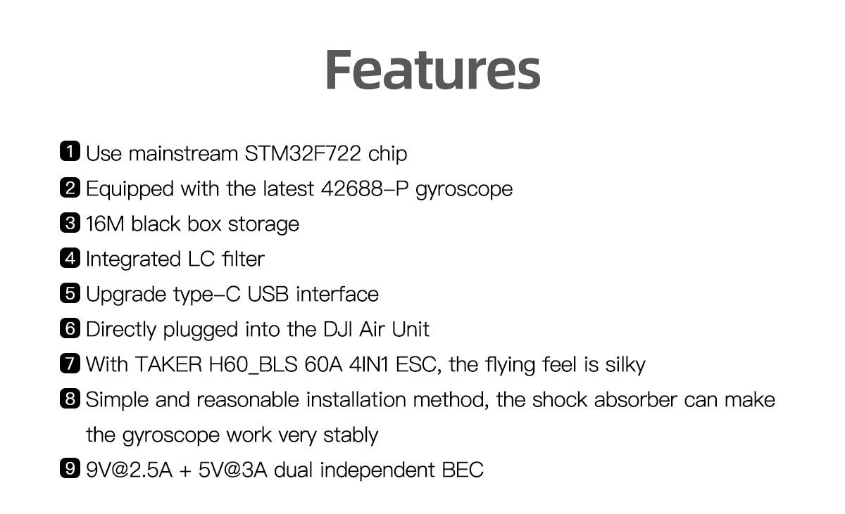 - With TAKER H60_BLS 60A 4IN1 ESC, the flying feel is silky